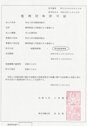 3年間の在留が認められ、最初の1年間の資格を「技能実習1号」、あとの2年間の資格を「技能実習2号」と区別し、「1号」から「2号」に移行するには資格変更手続きが必要です。また5年間の在留が認められた場合は「3号」に移行します。